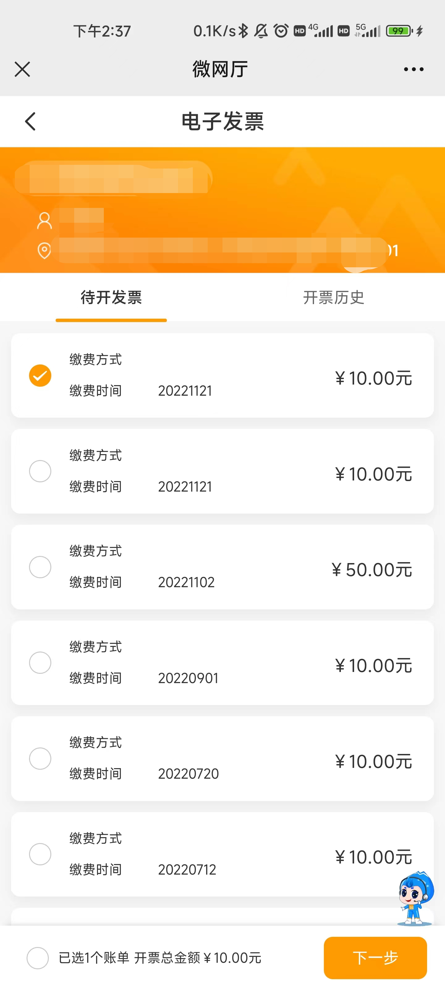 4、选择并开具电子发票